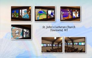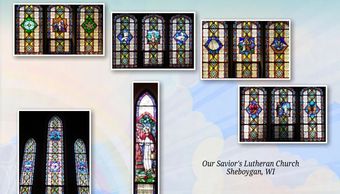 Stained Glass depicting phases of Christ's Life; Triple window - A Mighty Fortress; and Christ, Knocking at the Door